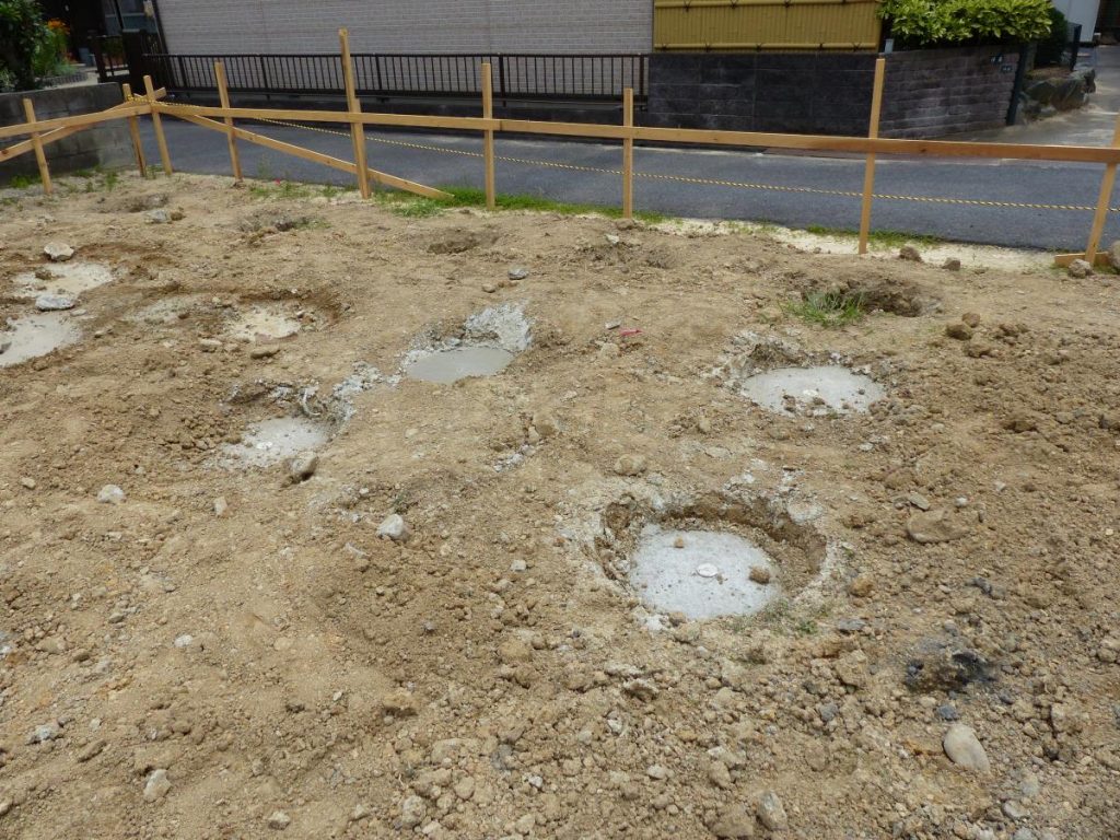 こちらは鈴鹿市の現場です。地盤補強工事も無事終了しました。 また地鎮祭の時に頂きました鎮物を基礎工事に先立ちお施主様と一緒に埋設しました。